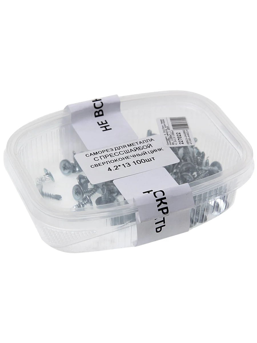 | Наименование | Саморез 4.2х13мм прессшайба сверло контейнер (100шт.) ЦКИ |
