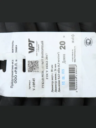 Шланг d=18х26-0.63 маслобензостойкий 1м ГОСТ 10362-76 VPT VPT v-10545