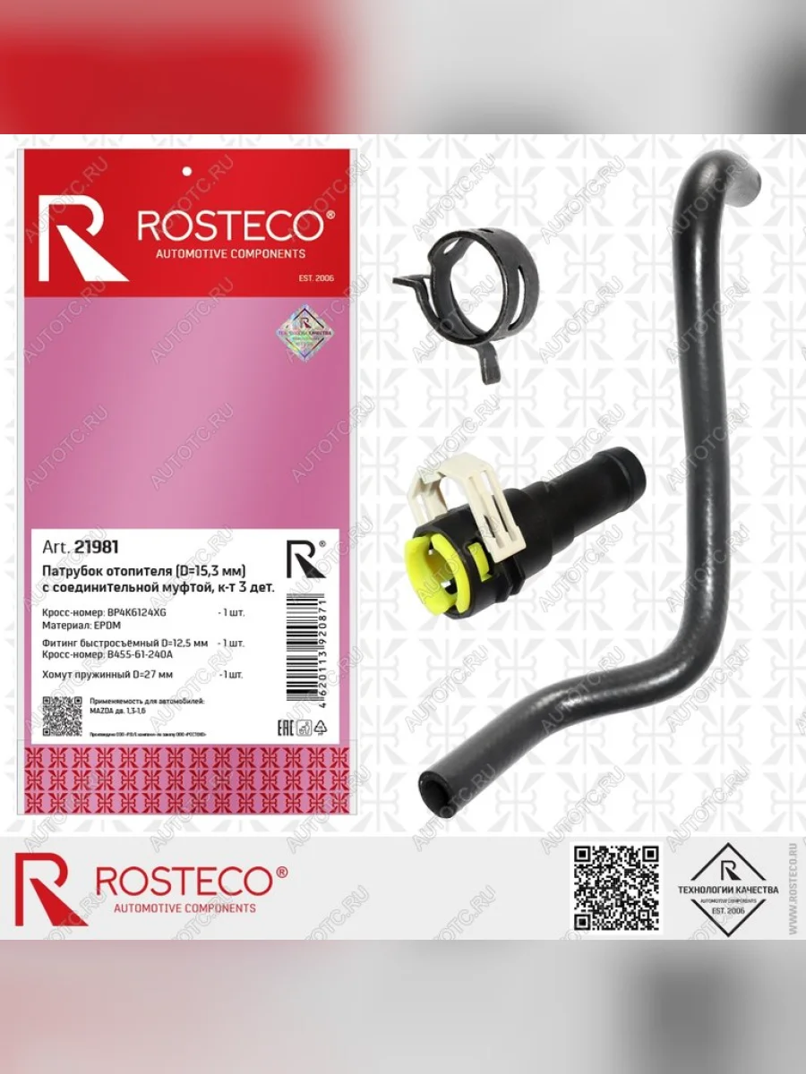 Шланг MAZDA 3 (06-) системы охлаждения ROSTECO
