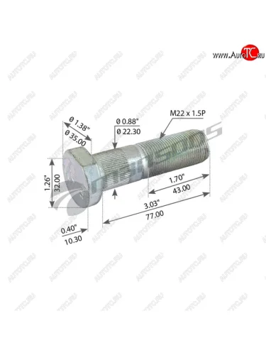 | Наименование | Шпилька колеса SAF (M22x1.5x76) MANSONS MANSONS 600.122 |