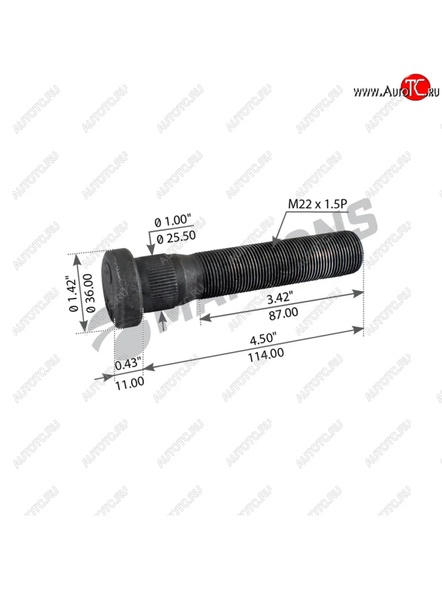 | Наименование | Шпилька колеса VOLVO FH FM (М22х1.5х124114мм) MANSONS MANSONS 900.632 |
