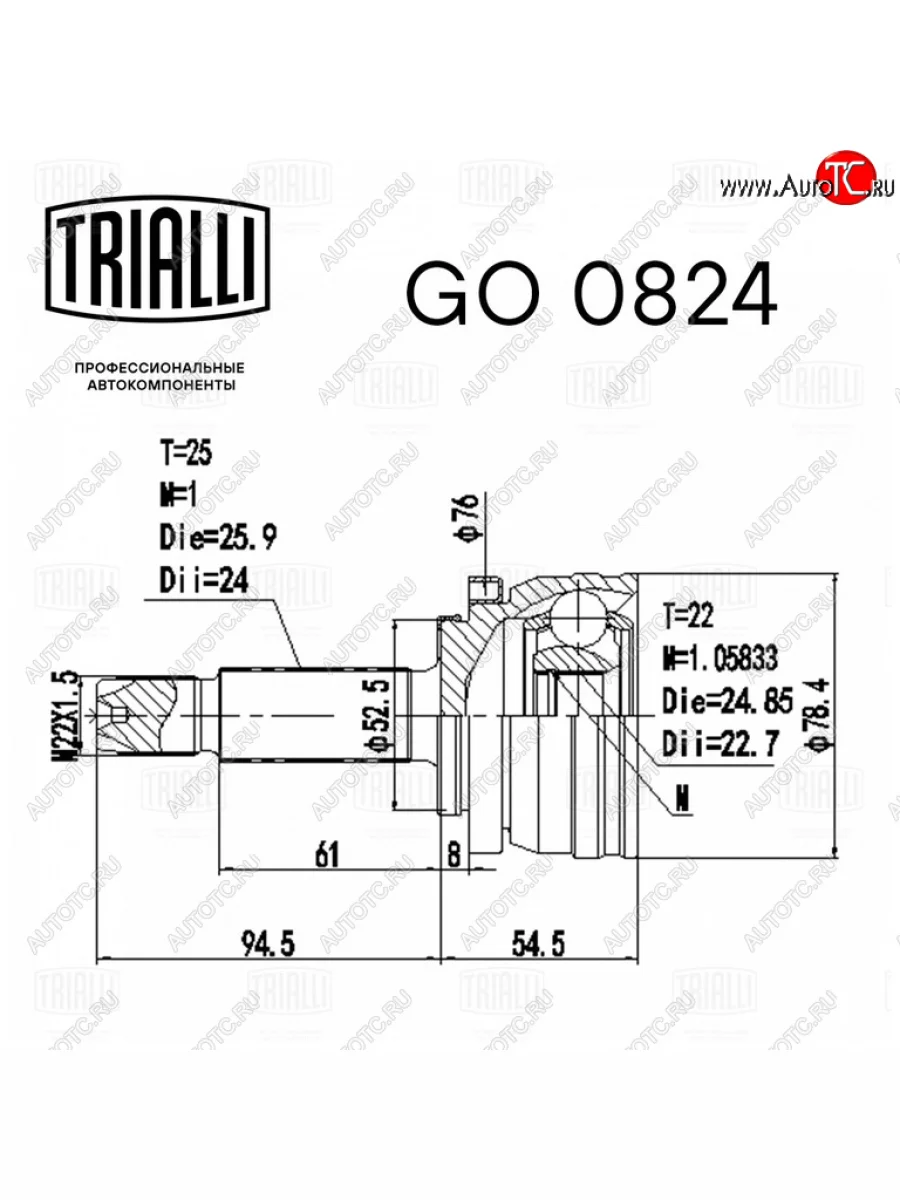 | Наименование | ШРУС наружный HYUNDAI Solaris (17-) комплект TRIALLI TRIALLI go0824 |