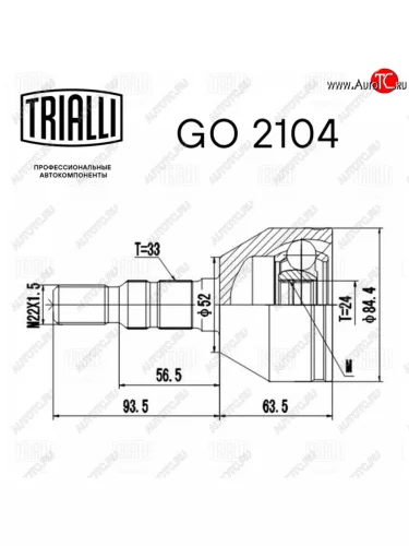 | Наименование | ШРУС наружный OPEL Astra H (05-) комплект TRIALLI TRIALLI go2104 |