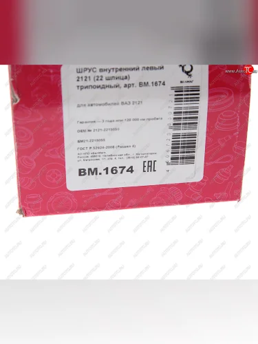 | Наименование | ШРУС внутренний ВАЗ-2121 левый трипоидный БЕЛМАГ БЕЛМАГ bm1674 |