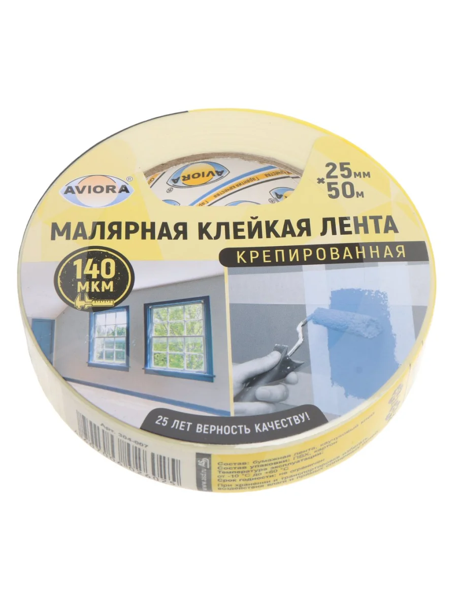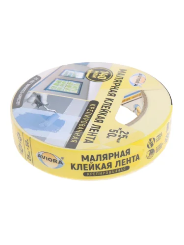 | Наименование | Скотч малярный 25ммх0.14мм 50м белый крепированный AVIORA |
