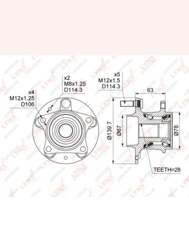 | Наименование | Ступица MAZDA CX-7,CX-9 (07-) задняя с подшипником LYNX |