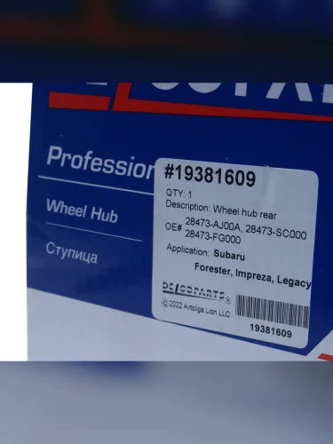 | Наименование | Ступица SUBARU Forester (08-) задняя с подшипником DELCOPARTS |