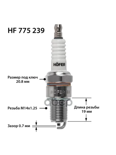 Свеча Hofer Hf 775 239 Для АМ Газ 3110 3302 2752 Дв.406 (0 7Мм R) (К-Кт 4 Шт.) (Hf 775 239) HOFER арт. HF 775 239