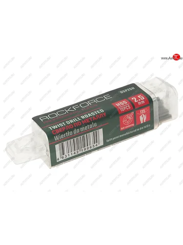 | Наименование | Сверло по металлу 2.5мм HSS Cobalt (10шт.) ROCKFORCE ROCKFORCE rf-dsp25h |