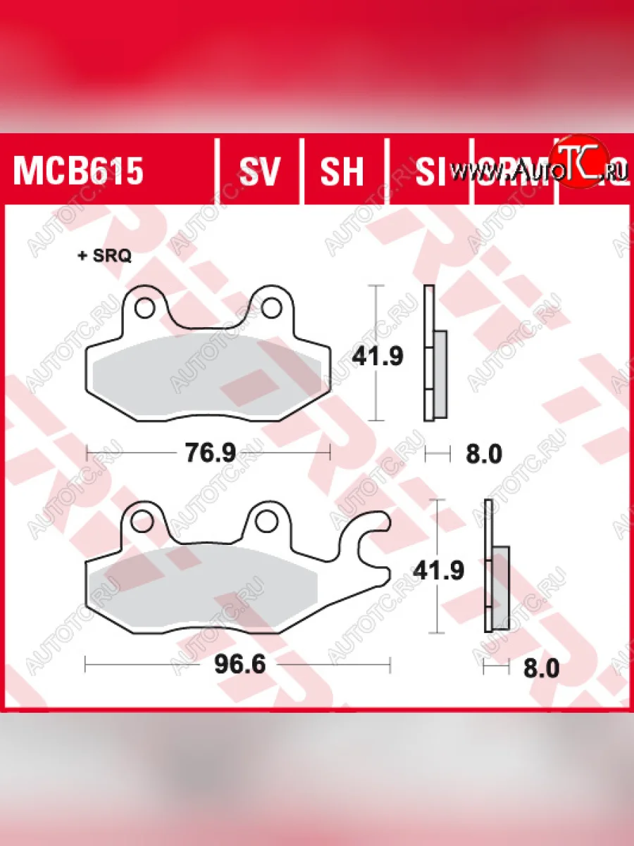 | Наименование | Тормозные колодки TRW MCB615 mcb615 |