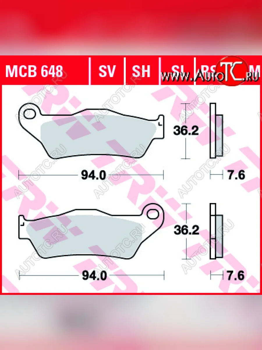 | Наименование | Тормозные колодки TRW MCB648SH mcb648sh |