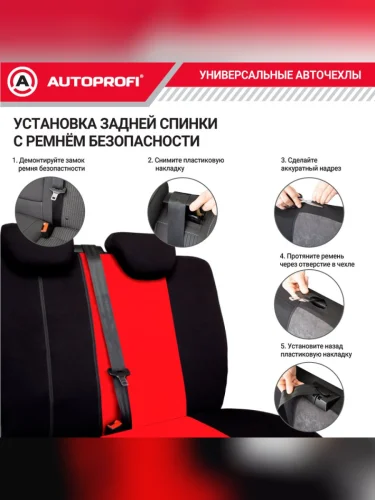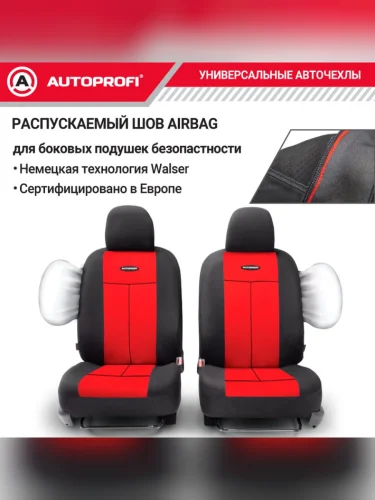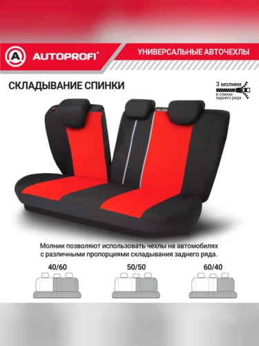 Универсальные чехлы сидений (9 предм., полиэстер, AIRBAG, 40/60, 50/50, 60/40) AUTOPROFI (черно-красные)