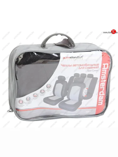 | Наименование | Универсальные чехлы сидений (майка, 9 предм., полиэстер)Amsterdam AUTOSTANDART (черно-серые) |