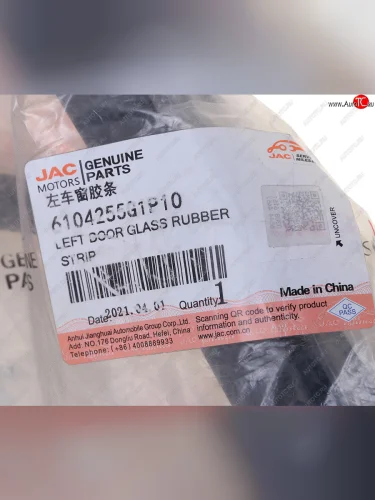 Уплотнитель стекла JAC N200,N350 форточки двери передней левой OE JAC 6104255g1p10