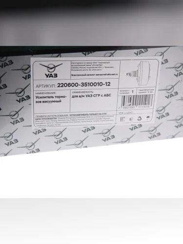 | Наименование | Усилитель вакуумный УАЗ-31519 3151 3741 под АБС (ОАО УАЗ) UAZ 220600-3510010-12 |