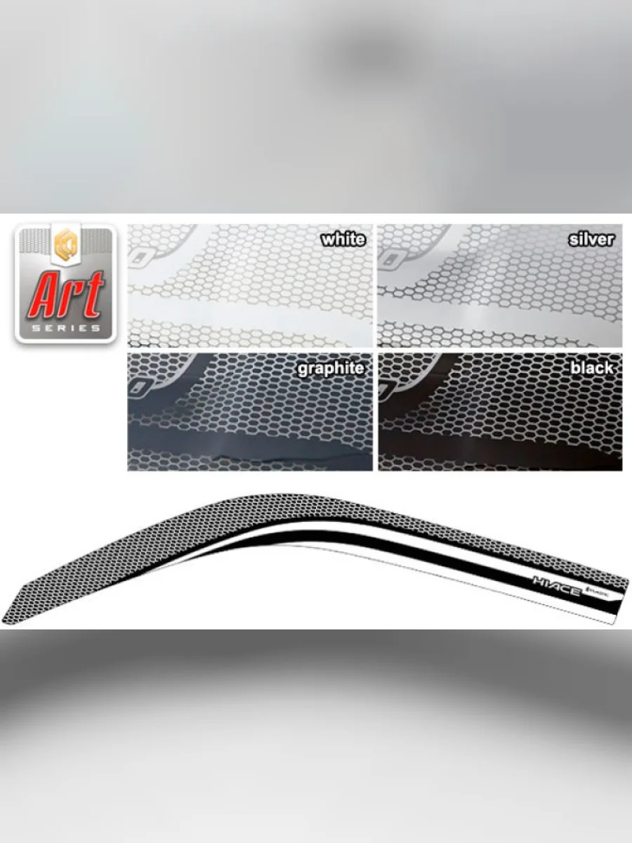 | Наименование | Ветровики дверей Серия Art белая Toyota Hiace Правый Руль 2004–н.в. |