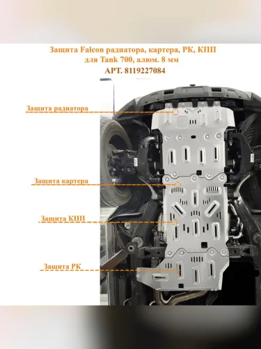 Защита Falcon радиатора картера РК КПП для TANK 700 алюминий 8 мм brand: Falcon width mm 2: 150 dlina mm: 940 ves kg 1: 34.9 vysota mm: 1220
