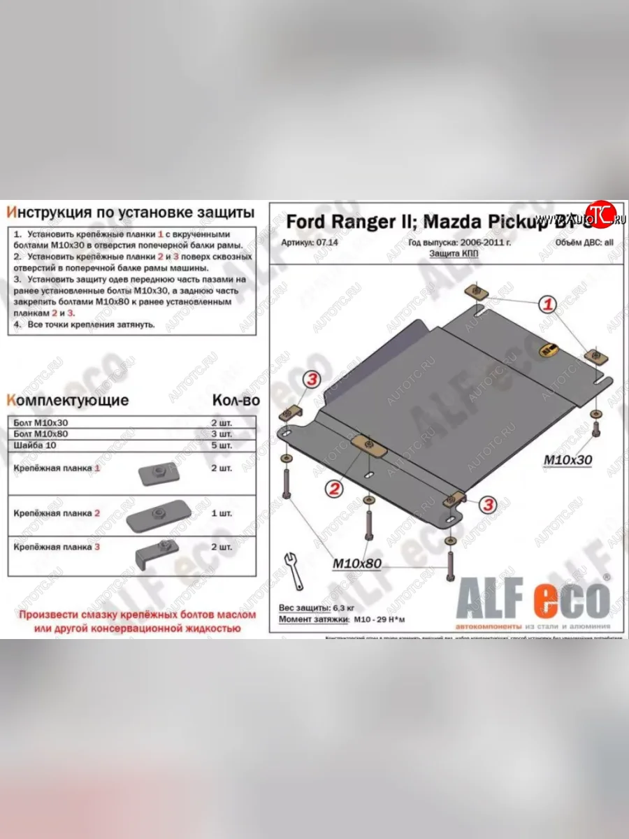 Защита КПП (V-2,5TD) ALFECO Mazda BT-50 (2006-2011) (Сталь 2 мм)